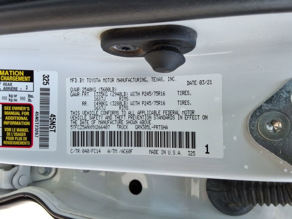 Whether you're hauling gear for your next outdoor adventure or navigating the daily commute, the 2021 Toyota Tacoma SR5 V6 is the perfect companion. With its impressive capabilities, advanced technology, and exceptional safety features, this truck is ready to elevate your driving experience.